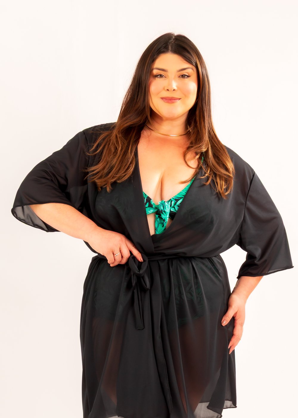 Nossa saída de praia, disponível em três estampas exclusivas, foi projetada para proporcionar leveza e estilo em dias ensolarados. Com comprimento na altura dos joelhos e recorte minimalista, ela valoriza a silhueta, com a mesma tamanho dos nossos robes você tem maior certeza na hora de escolher seu tamanho, que já oferece o caimento ideal para o corpo plus size. Criada para os tamanhos 48/50 ao 56/58, ela proporciona a largura perfeita para a sua circunferência, com tecido que realmente te abraça e fecha, garantindo segurança e mobilidade.